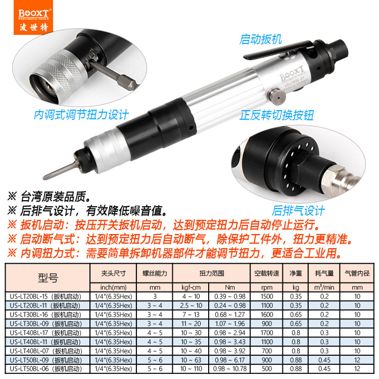 東莞強(qiáng)勁五金工具有限公司提供臺灣BOOXT波世特氣動工具,可調(diào)扭力風(fēng)批US-LT40BL-17系列廠家直銷,首件享特價。咨詢熱線:4008301980