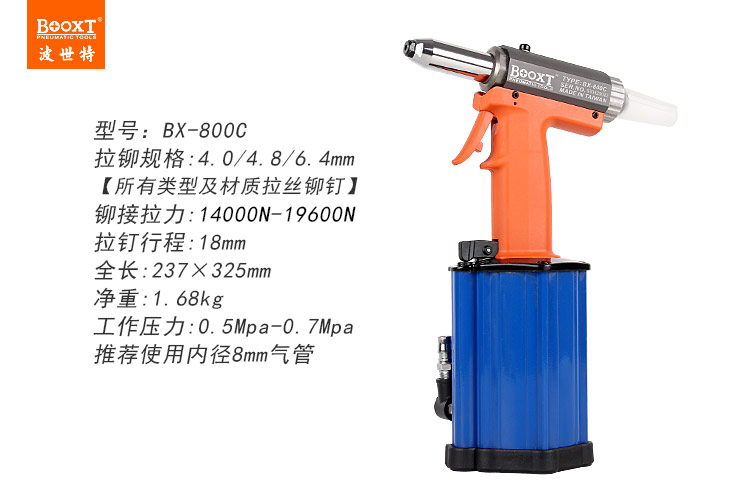 東莞市強(qiáng)勁五金工具有限公司提供臺灣BOOXT波世特品牌氣動工具,氣動拉釘槍BX-800C廠家直銷,首件享特價。咨詢熱線:4008301980