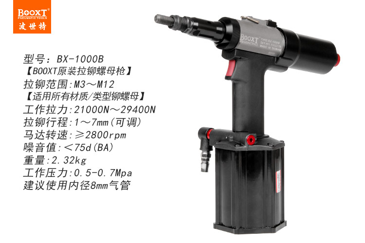 東莞市強(qiáng)勁五金工具有限公司提供BOOXT波世特品牌氣動(dòng)工具,氣動(dòng)拉鉚螺母槍BX-1000B廠(chǎng)家直銷(xiāo),首件享特價(jià)。咨詢(xún)熱線(xiàn):4008301980
