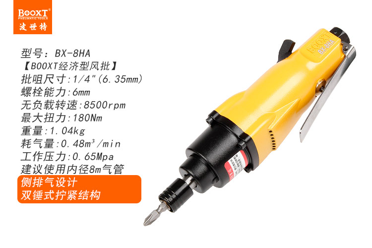 東莞市強(qiáng)勁五金工具有限公司提供臺(tái)灣BOOXT波世特品牌氣動(dòng)工具,直式氣動(dòng)螺絲刀BX-8HA廠家直銷,首件享特價(jià)。咨詢熱線:4008301980