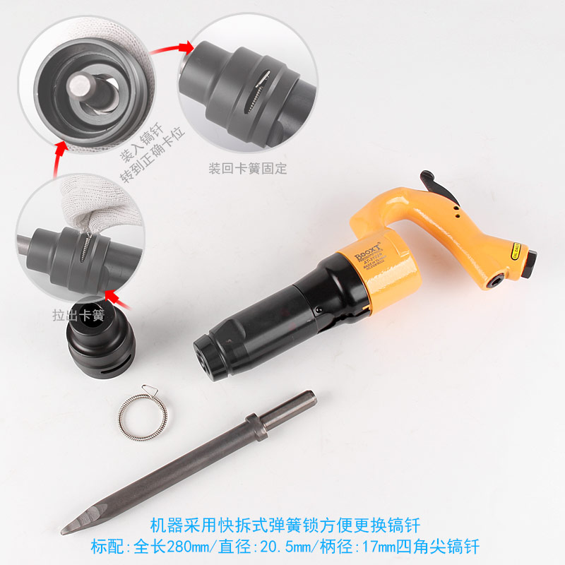 • 產(chǎn)品用途: 配合不同規(guī)格的鏟頭或鎬尖,去除各種附著物如涂料、鐵銹、焊漬、 鑄件剝離、清除水泥、涵洞巖石破碎等作業(yè)?!竟I(yè)型】