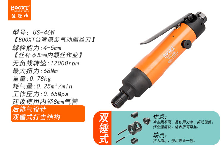 東莞市強(qiáng)勁五金工具有限公司提供臺(tái)灣BOOXT波世特品牌氣動(dòng)工具,氣動(dòng)螺絲刀US-46W廠家直銷,首件享特價(jià)。咨詢熱線:4008301980