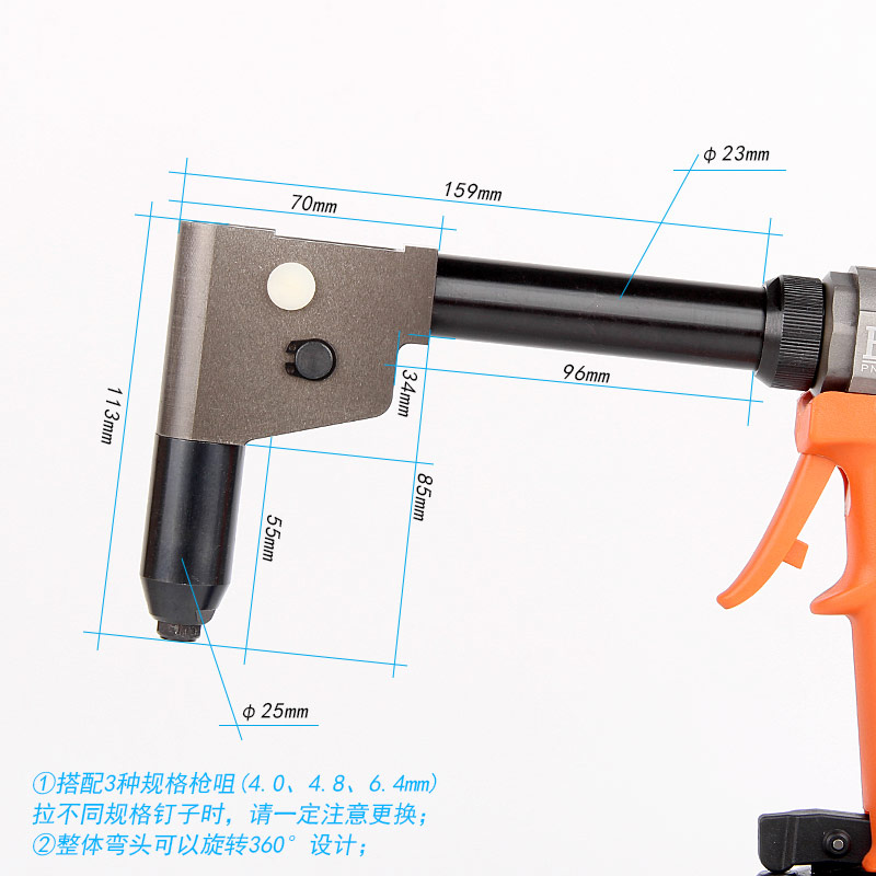 8.彎頭設計,適用于狹窄、偏角工位鉚接作業(yè)。