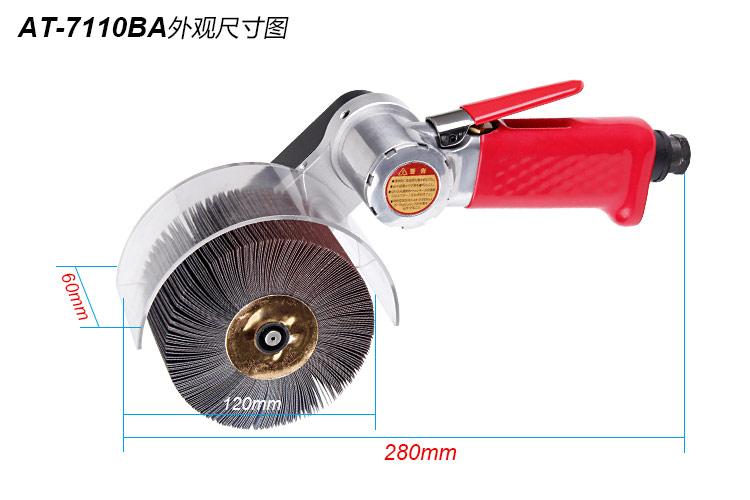 • 產(chǎn)品參數(shù): 空載轉(zhuǎn)速:7000rpm; 工具長(zhǎng)度:280mm; 工具重量:0.96kg; 馬達(dá)功率:0.5HP; 耗 氣 量:0.65m3/min; 使用工作氣壓:0.65Mpa; 推薦使用內(nèi)徑8mm氣管; 平時(shí)使用應(yīng)多加氣動(dòng)油保養(yǎng).