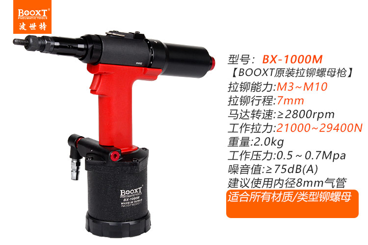 東莞市強勁五金工具有限公司提供BOOXT波世特品牌氣動工具,全自動鉚螺母槍BX-1000M廠家直銷,首件享特價。咨詢熱線:4008301980