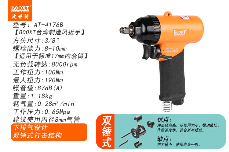 東莞市強勁五金工具有限公司提供臺灣BOOXT波世特品牌氣動工具,小風炮AT-4176B廠家直銷,首件享特價。咨詢熱線:4008301980