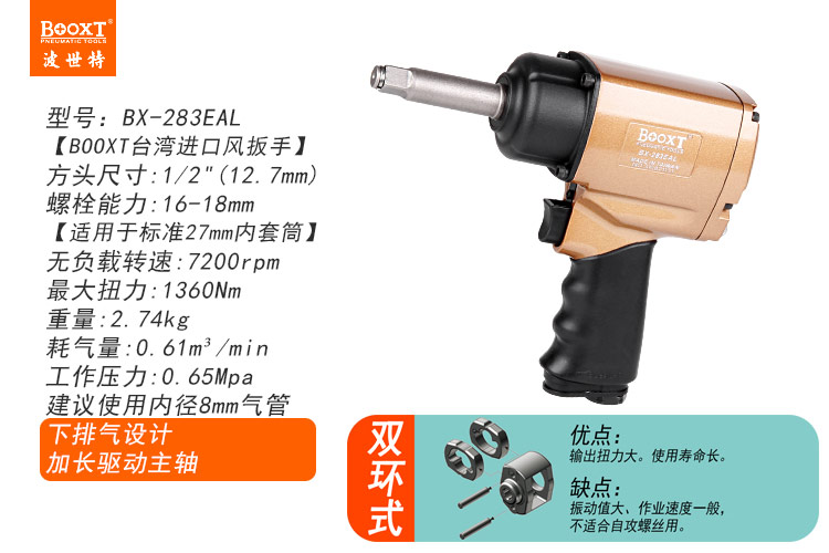 東莞市強(qiáng)勁五金工具有限公司提供臺(tái)灣BOOXT波世特品牌氣動(dòng)工具,加長軸氣動(dòng)扳手BX-283EAL廠家直銷,首件享特價(jià)。咨詢熱線:4008301980