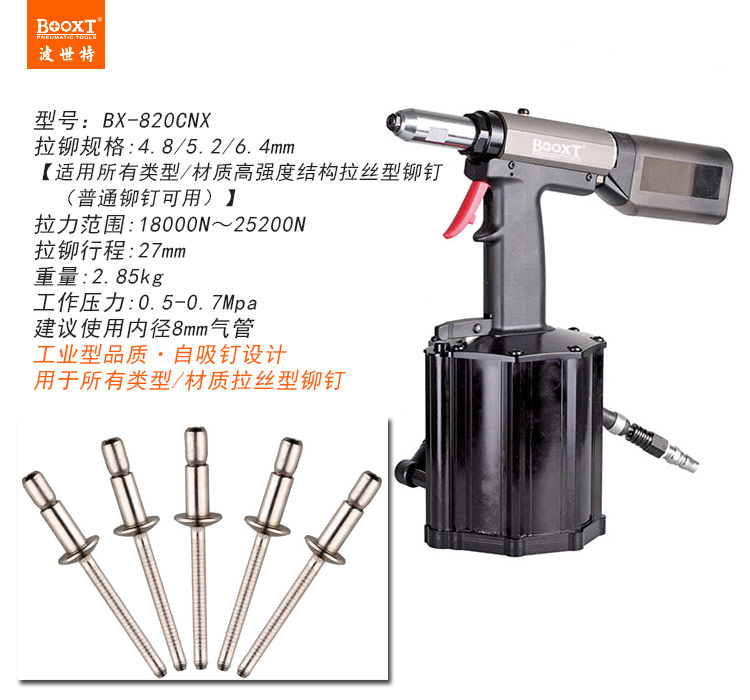 東莞市強(qiáng)勁五金工具有限公司提供臺灣BOOXT波世特品牌氣動工具,自吸式氣動拉絲鉚釘槍BX-820CNX廠家直銷,首件享特價。咨詢熱線:4008301980