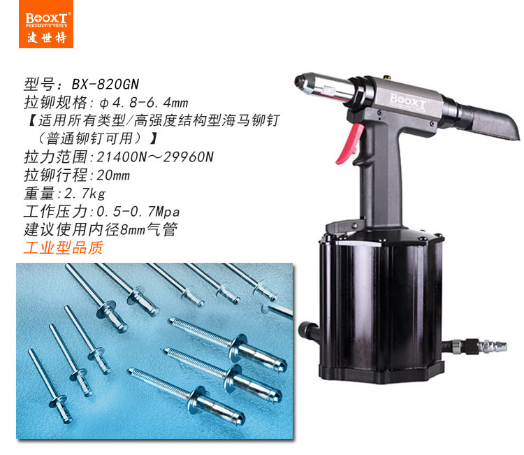 東莞市強(qiáng)勁五金工具有限公司提供臺(tái)灣BOOXT波世特品牌氣動(dòng)工具,氣動(dòng)海馬鉚釘槍BX-820GN廠家直銷,首件享特價(jià)。咨詢熱線:4008301980