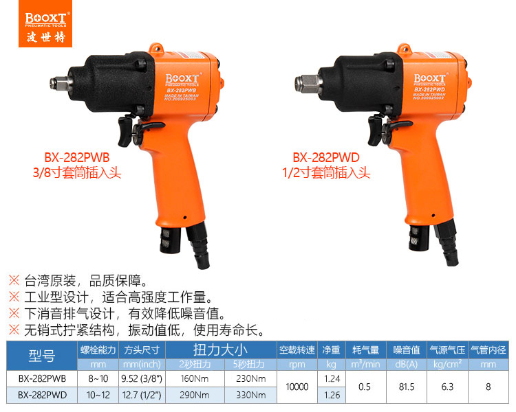 東莞市強(qiáng)勁五金工具有限公司提供臺灣BOOXT波世特品牌氣動工具,槍型氣動扳手BX-282PWB廠家直銷,首件享特價。咨詢熱線:4008301980