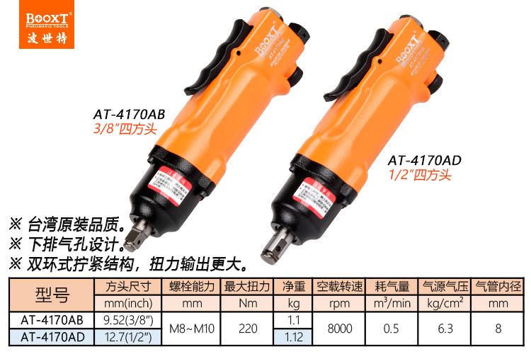 東莞市強(qiáng)勁五金工具有限公司提供臺(tái)灣BOOXT波世特品牌氣動(dòng)工具,直式風(fēng)扳手AT-4170AD廠家直銷,首件享特價(jià)。咨詢熱線:4008301980