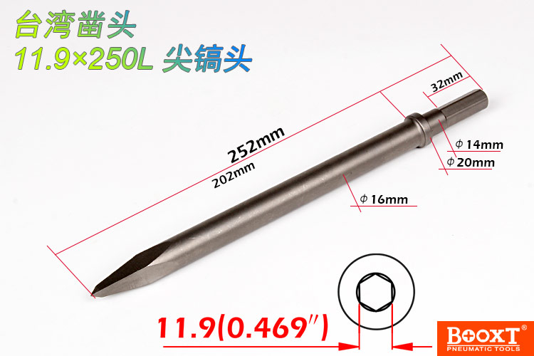 鎬尖尺寸:H11.9*250L*20W   【標配/扁鎬頭】