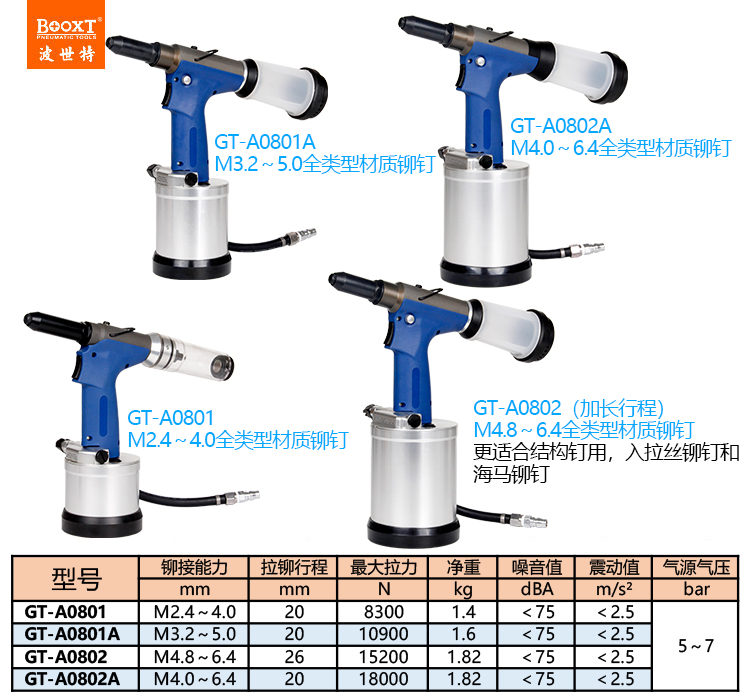 東莞市強(qiáng)勁五金工具有限公司提供臺(tái)灣BOOXT波世特品牌氣動(dòng)工具,風(fēng)動(dòng)拉釘槍GT-A0802廠家直銷,首件享特價(jià)。咨詢熱線:4008301980