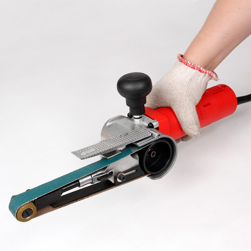 1)使用不同砂粒的砂帶或尼龍拉絲帶,對狹小、復(fù)雜、焊縫、點(diǎn)焊、小角度、死角處凹凸面等普通打磨機(jī)無法進(jìn)入的部位進(jìn)行研磨、打磨、拋光、拉絲、倒角、去毛刺、涂膜作業(yè)等表面處理作業(yè)。