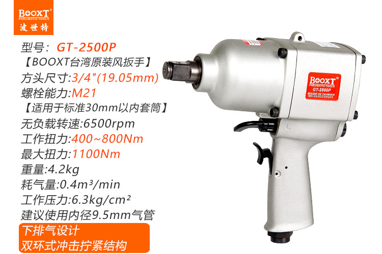 東莞市強勁五金工具有限公司提供臺灣BOOXT波世特品牌氣動工具,工業(yè)級中風炮GT-2500P廠家直銷,首件享特價。咨詢熱線:4008301980