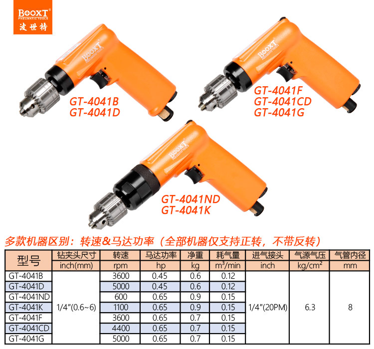 東莞市強(qiáng)勁五金工具有限公司提供臺(tái)灣BOOXT波世特品牌氣動(dòng)工具,5000轉(zhuǎn)氣動(dòng)鉆GT-4041G廠家直銷,首件享特價(jià)。咨詢熱線:4008301980