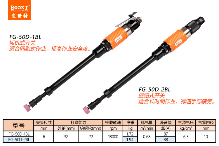 東莞市強(qiáng)勁五金工具有限公司提供臺灣BOOXT波世特品牌氣動(dòng)工具,加長氣動(dòng)刻磨機(jī)FG-50D-2BL廠家直銷,首件享特價(jià)。咨詢熱線:4008301980