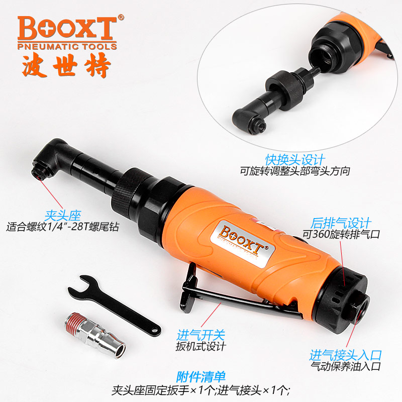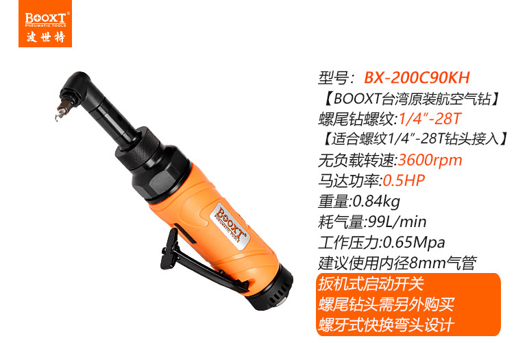 東莞市強勁五金工具有限公司提供臺灣BOOXT波世特品牌氣動工具,彎頭螺尾柄氣鉆BX-200C90KH廠家直銷,首件享特價。咨詢熱線:4008301980
