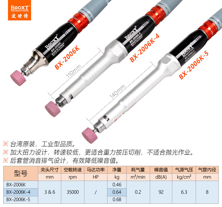 東莞市強(qiáng)勁五金工具有限公司提供臺(tái)灣BOOXT波世特品牌氣動(dòng)工具,加長(zhǎng)氣動(dòng)刻磨筆BX-2006K-5廠家直銷,首件享特價(jià)。咨詢熱線:4008301980