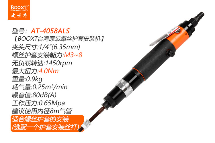東莞市強(qiáng)勁五金工具有限公司提供臺(tái)灣BOOXT波世特品牌氣動(dòng)工具,氣動(dòng)不銹鋼螺絲護(hù)套安裝機(jī)AT-4085ALS廠家直銷,首件享特價(jià)。咨詢熱線:4008301980