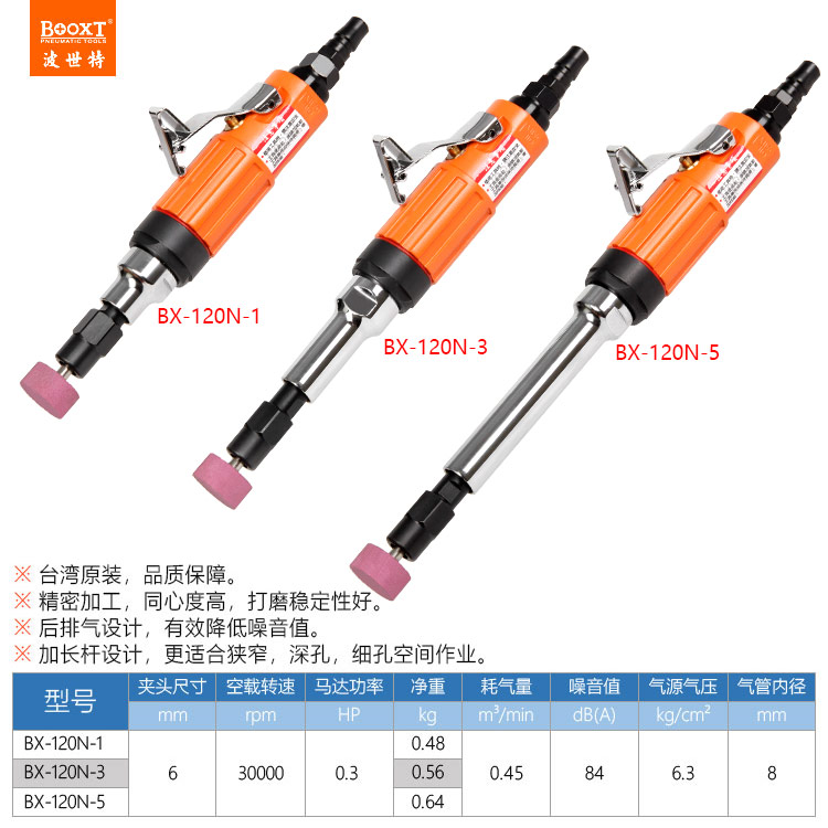 東莞市強(qiáng)勁五金工具有限公司提供臺灣BOOXT波世特品牌氣動(dòng)工具,加長氣動(dòng)刻磨機(jī)BX-120N-5廠家直銷,首件享特價(jià)。咨詢熱線:4008301980