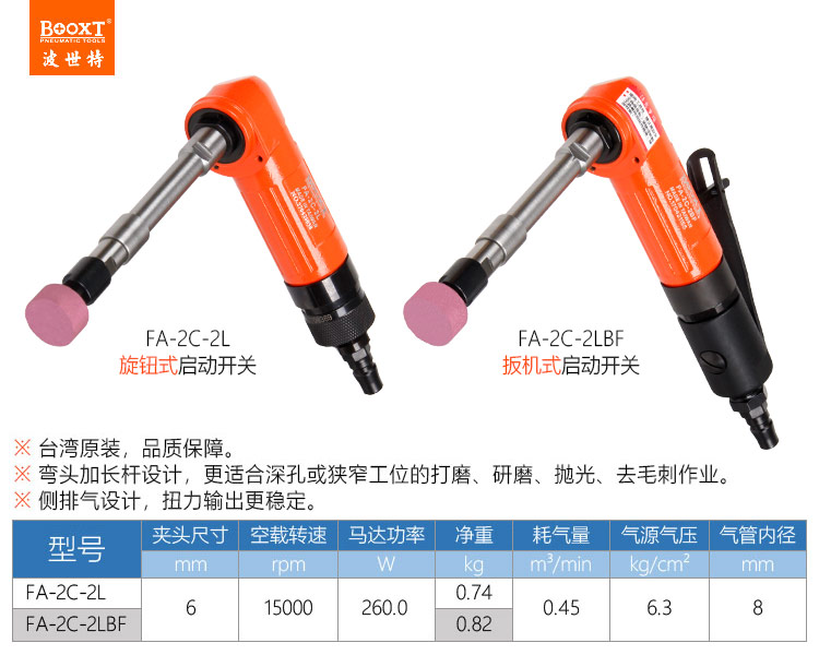 東莞市強勁五金工具有限公司提供臺灣BOOXT波世特品牌氣動工具,氣動深孔打磨機(jī)FA-2C-2L廠家直銷,首件享特價。咨詢熱線:4008301980