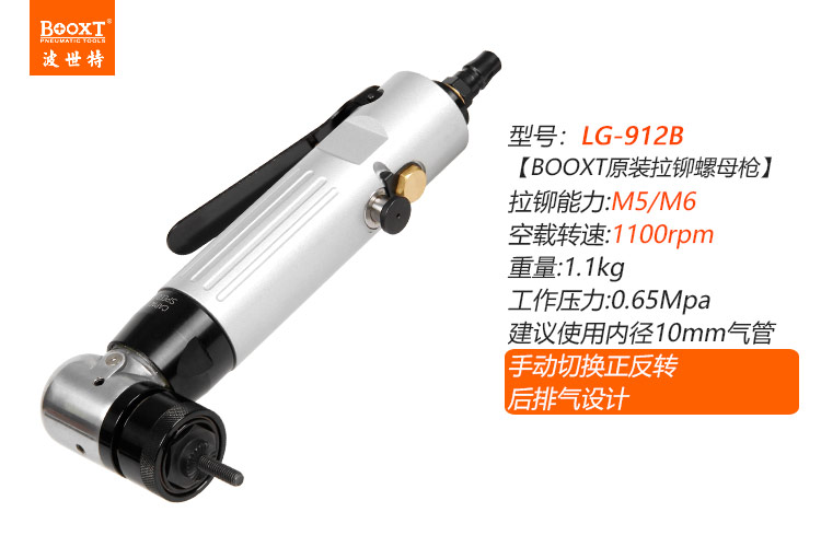 東莞市強(qiáng)勁五金工具有限公司提供臺(tái)灣BOOXT波世特品牌氣動(dòng)工具,彎頭氣動(dòng)鉚螺母槍LG-912B廠家直銷,首件享特價(jià)。咨詢熱線:4008301980