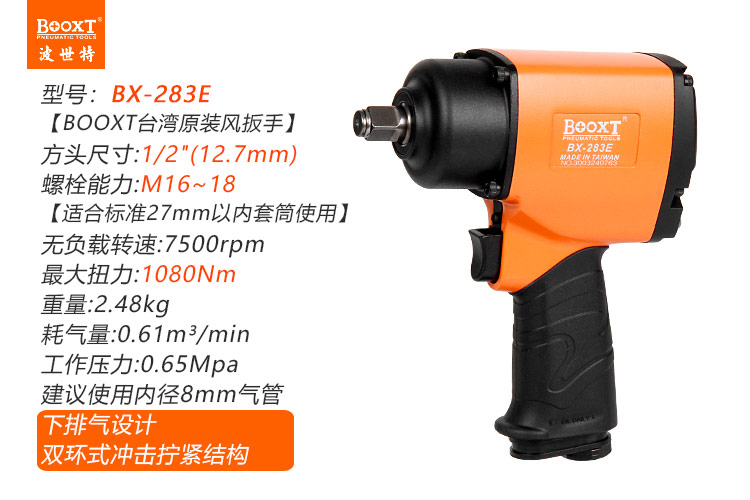 東莞市強勁五金工具有限公司提供臺灣BOOXT波世特品牌氣動工具,風動扳手BX-283E廠家直銷,首件享特價。咨詢熱線:4008301980